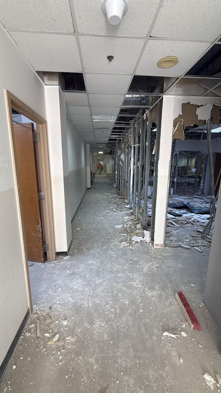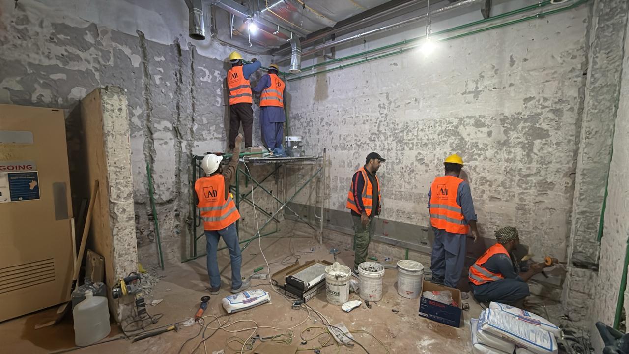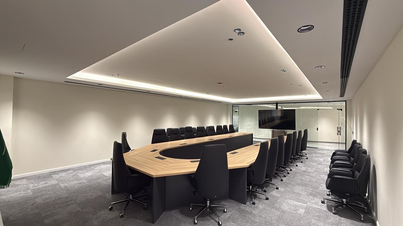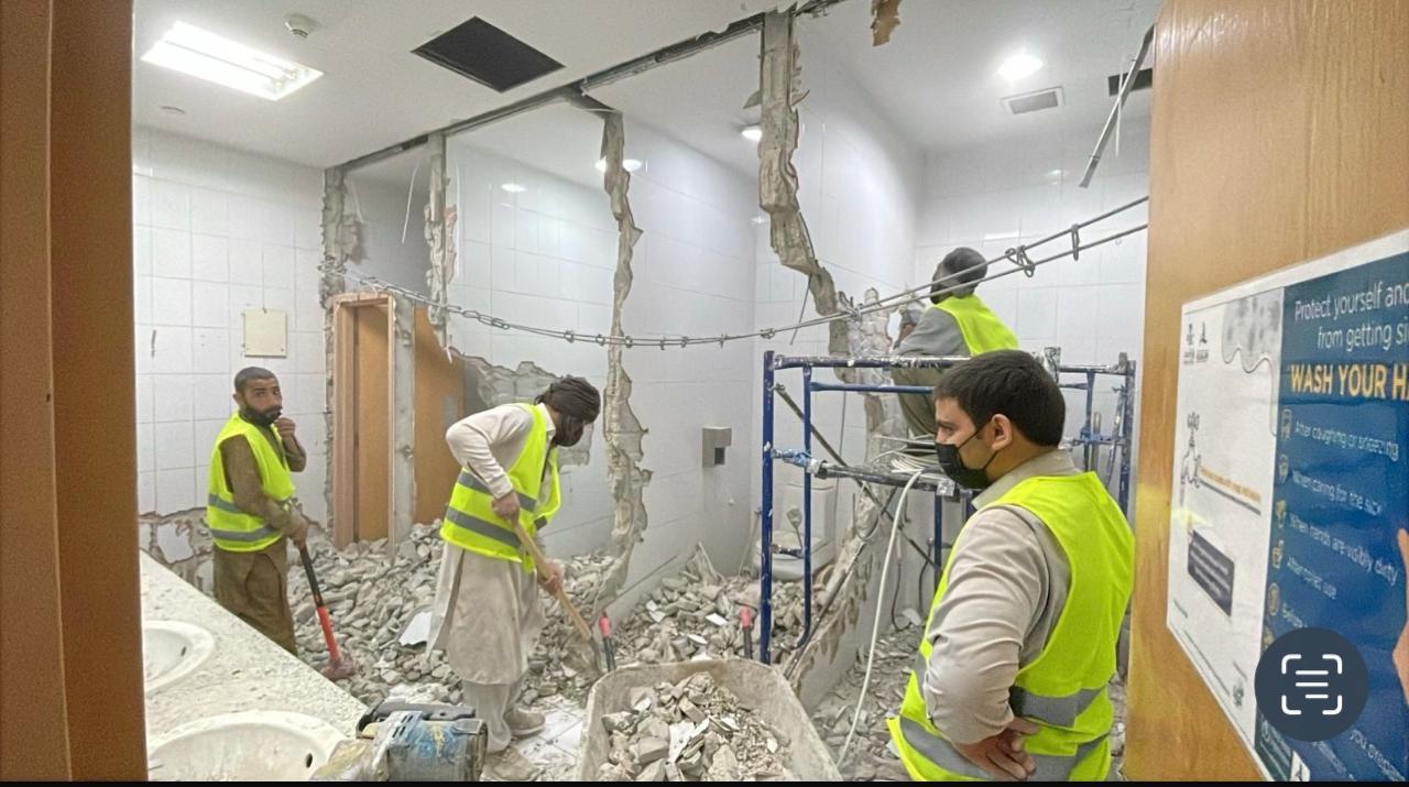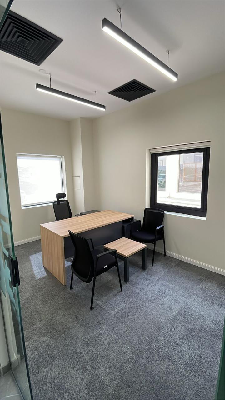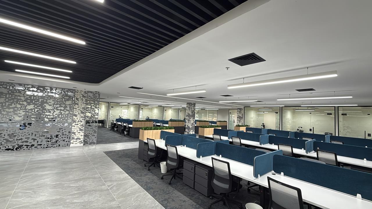 المساحه 2800 متر مربع المده 60 يوم إزالة أرضيات البلاط القديم وتاسيس سباكه وكهرباء وعمل جبس بورد وتركيب دكتات التكييف وتركيب الفواصل وتوريد الاجهزه الالكترونيه والاثاث المكتبي بالكامل