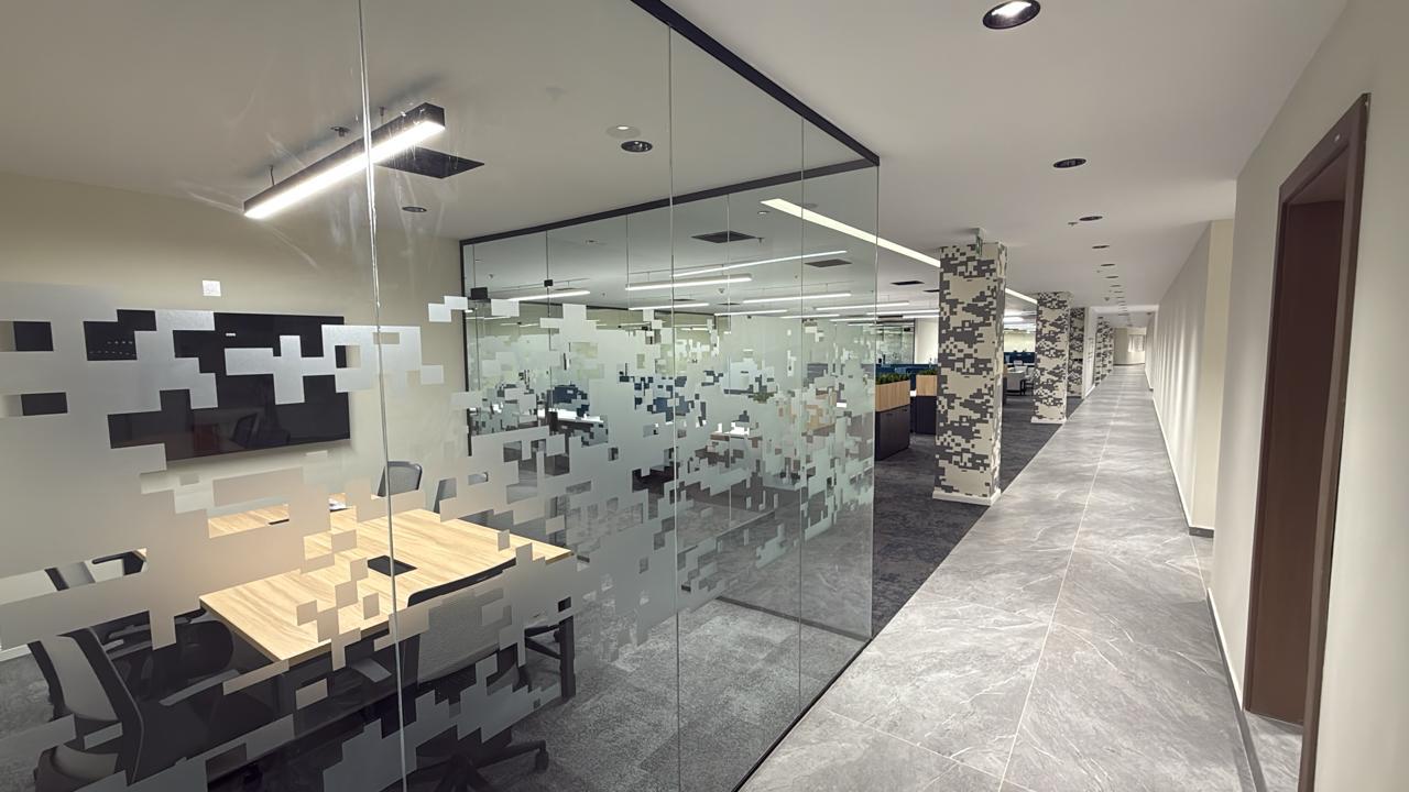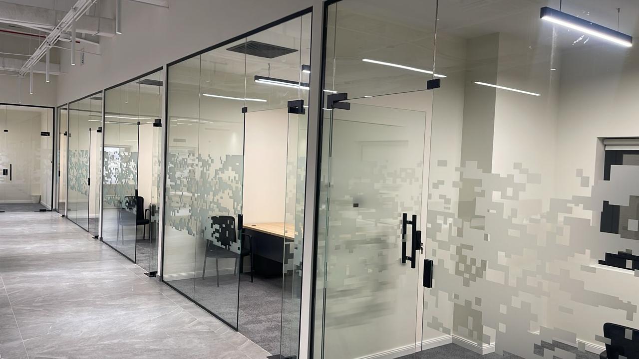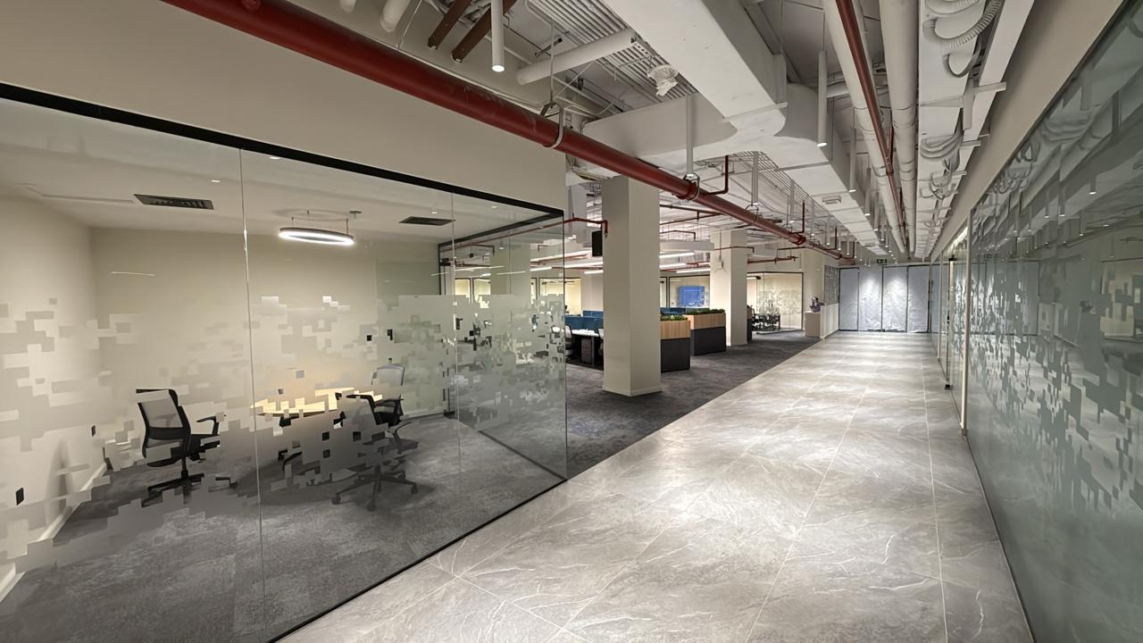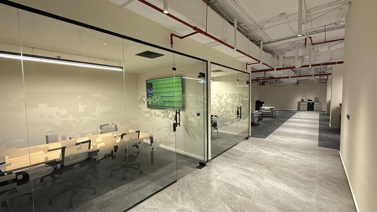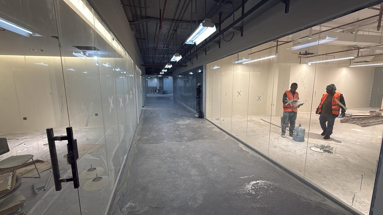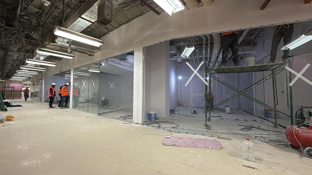 المساحه 350 متر مربع و مدة التنفيذ 20 ايام إزالة أرضيات البلاط القديم وتاسيس سباكه وكهرباء وعمل جبس بورد وتركيب دكتات التكييف وتركيب زجاج الفواصل وتوريد الاجهزه الالكترونيه والاثاث المكتبي بالكامل