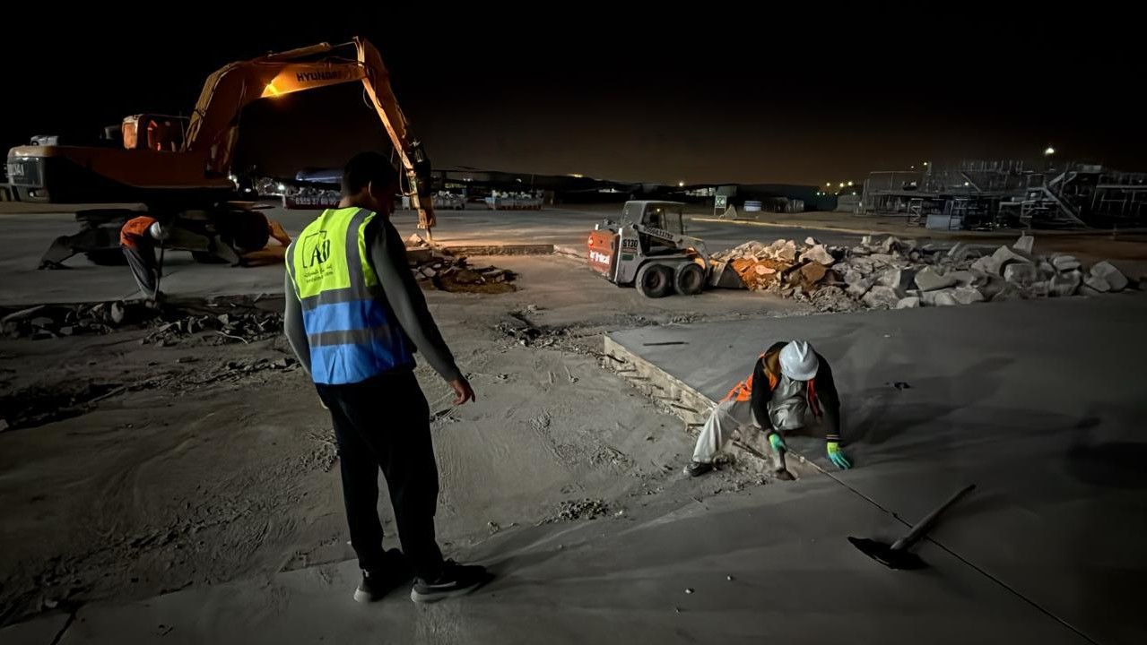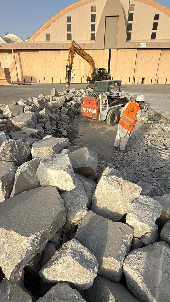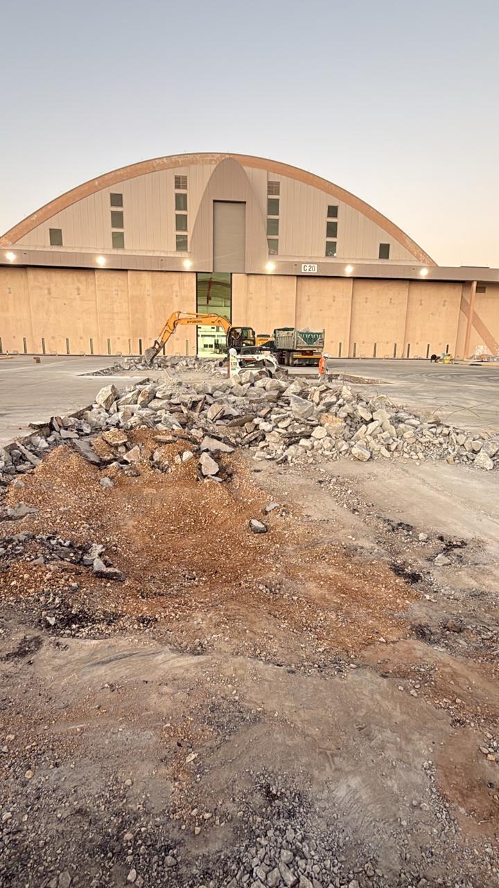 ازاله مظلات خرسانيه وتسويه للارضيه وتركيب انترلوك لمواقف السيارات